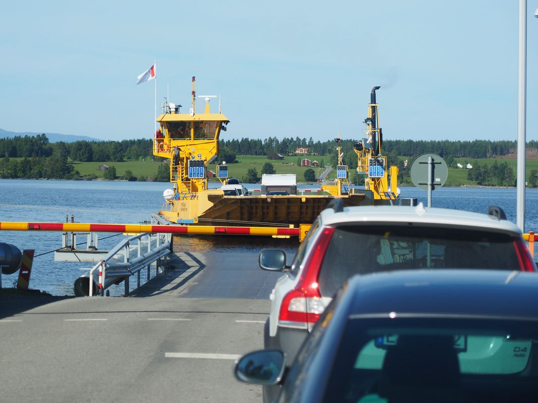 Schon um 10:30 Uhr standen wir in der endlosen Schlange der Wagen, die auf die Faehre wollten.